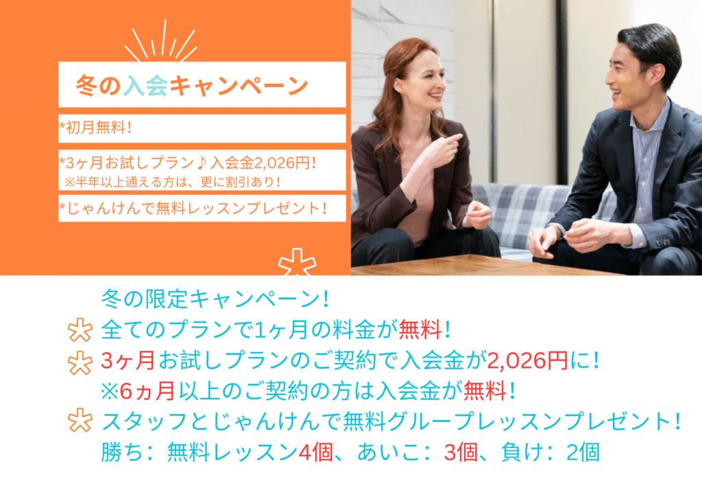 ジャブル英会話スクールでは、冬の入会キャンペーンを実施中です!
